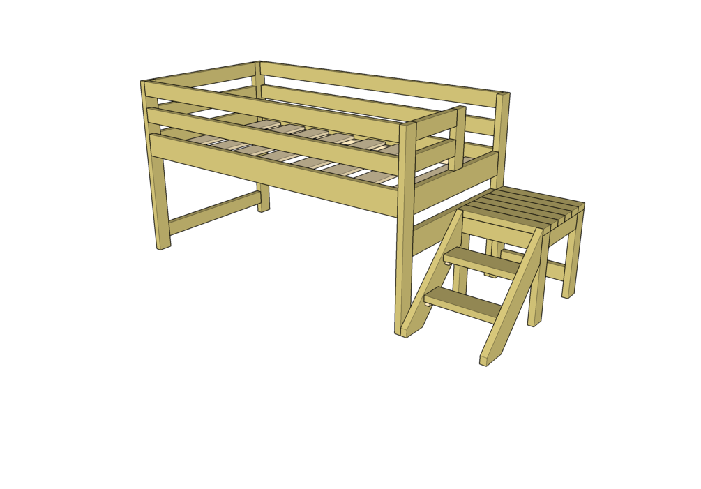 This loft bed is a perfect solution for your little one with its easy to climb on stairs, rails for safety and a play area underneath (Or you can fit another bed!) This project is easily made in a weekend with a few 2x4's and 2x6's and a few other materials!